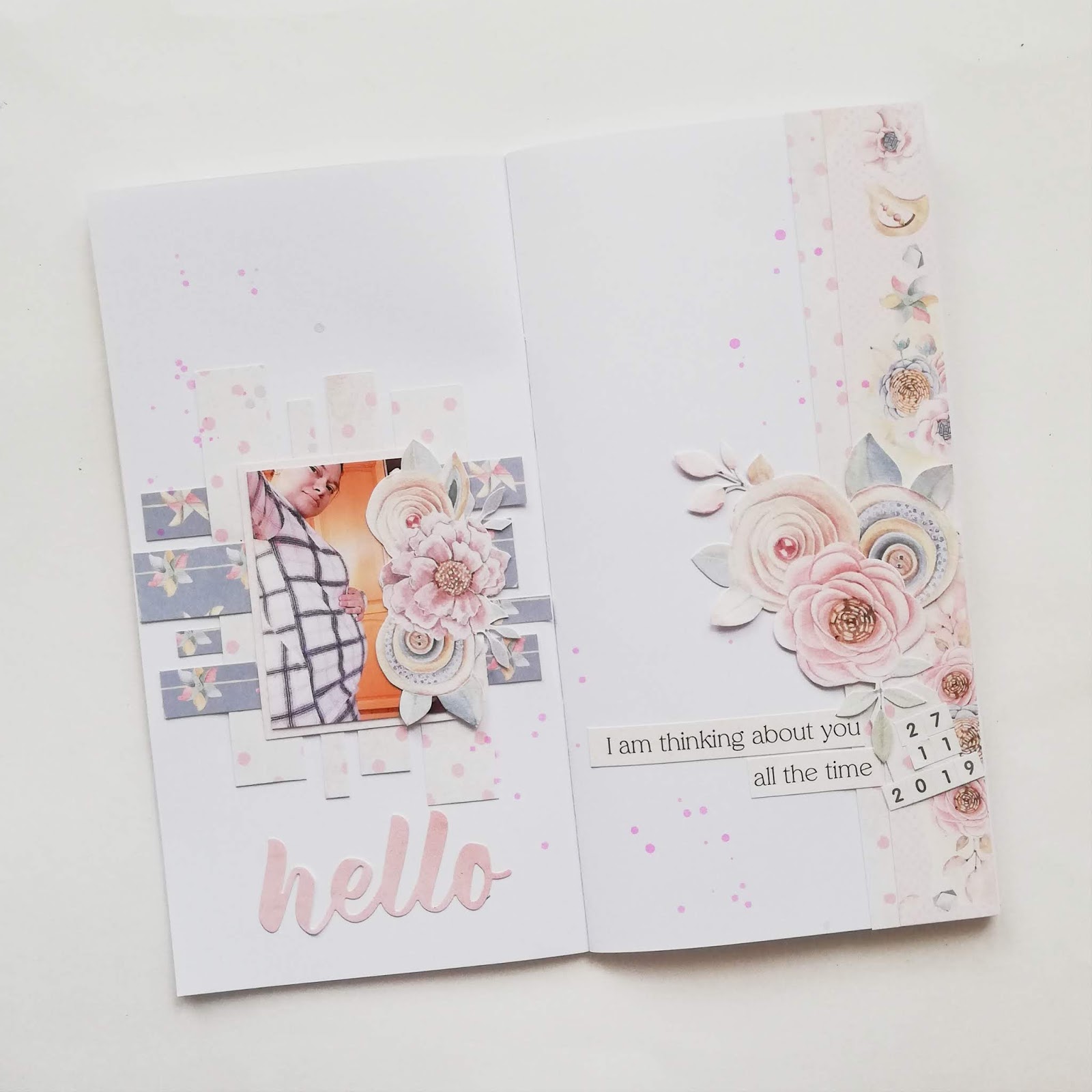 Tento měsíc se v Paper Garden točí kolem miminek. Určitě jste zahlédli krásná miminkovská přání od Dianky a zadání soutěže. No a protože já jsem v očekávání, toto téma mi udělalo velkou radost. Moc těhotenských fotografií nemám, většinou jsou to momentky z koupelny, kde je vidět, jak mi roste pupík :) Rozhodla jsem se tyto fotky aspoň zpracovat do malého Travellers notebooku, abych na tohle období měla památku.